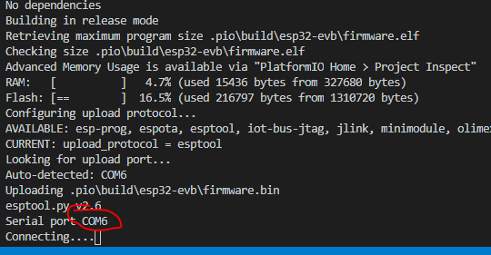 ...connect your Olimex ESP32-EVB and hit the upload button: