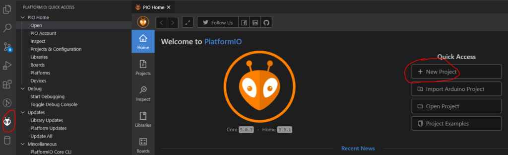 After this, run an update on pio (especially useful if you had PlatformIO already installed).