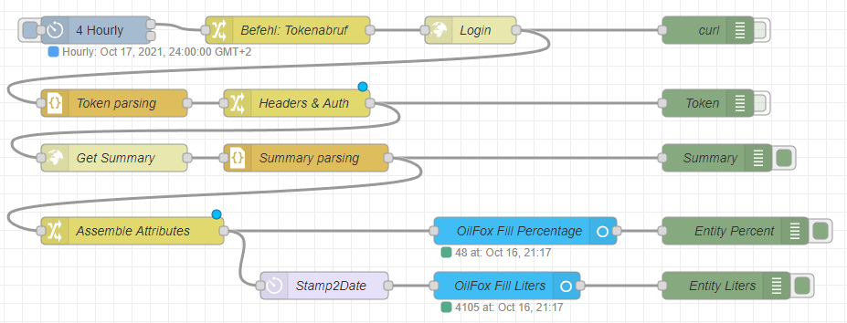 Now, here is my little node-red flow to get the OilFox data: