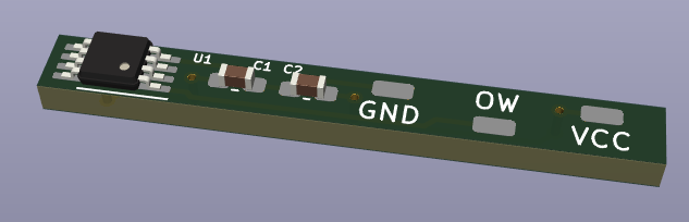 The tricky point is, that the default DS18B20 in TO-92 case are a bit to fat, to fit in a 5 mm tube. But the DB18B20U is the starving brother and thin enough to fit in, if placed on an appropriate PCB (0,6mm). So, I decided to design one and give it a try...