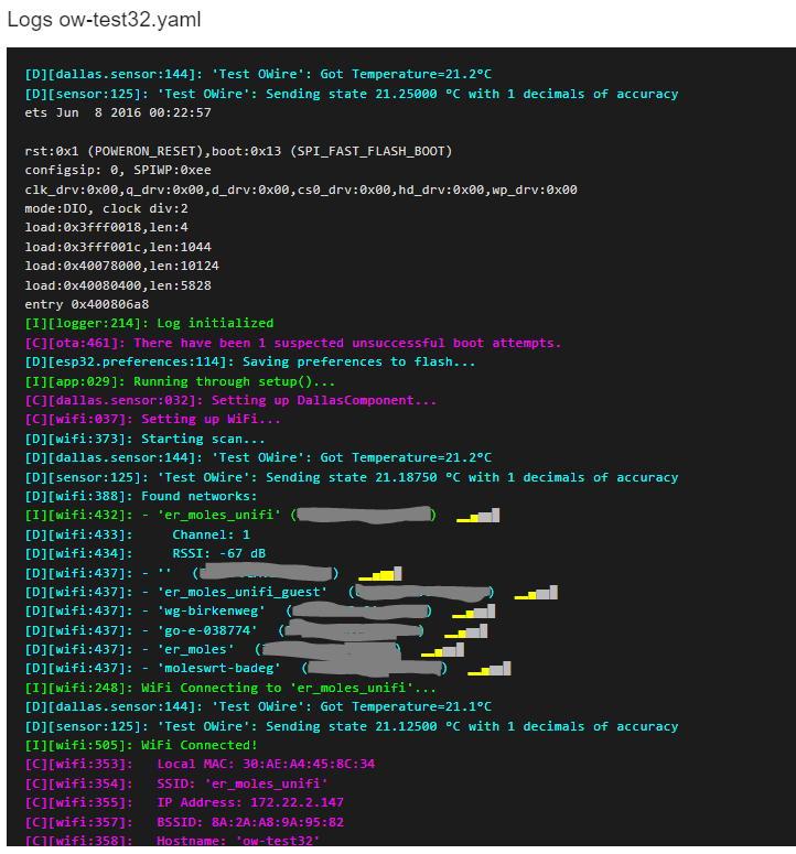 And after connecting it to some ESP32 that was lying around and adding the config to ESPhome, the sensor quickly showed up in ESPhome.
