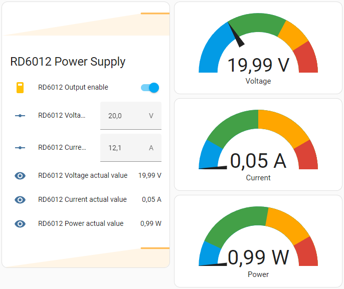 I don't want to miss, telling you a basic drawback of this approach. When there is modbus communication, the hardware keys are just disabled. So, do not set your update interval to narrow or you can not configure the stuff with the hardware keys anymore. I read something about an alternative firmware for the power supply itself, that does not suffer this restriction, but I also do not want to brick the supply. I would just disable the ESPhome component, if it disturbs me too much.